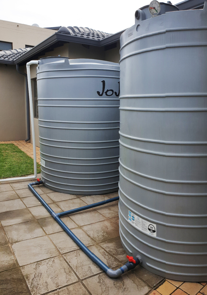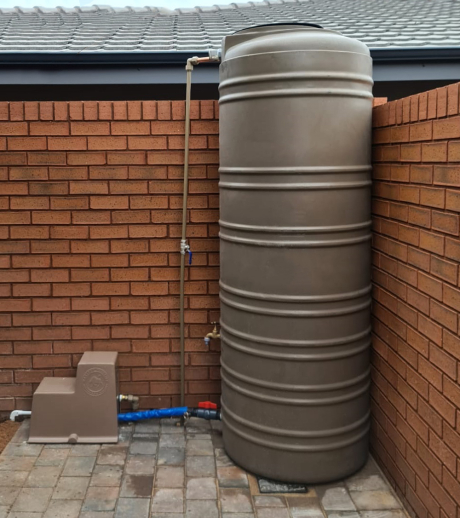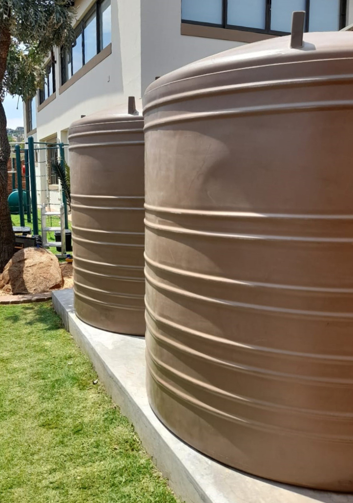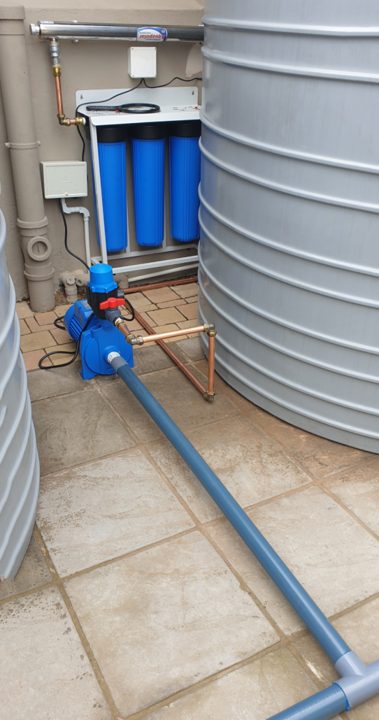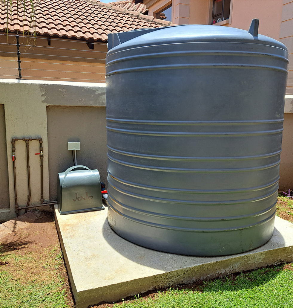 | Private Residence | Cinderella, Boksburg | Rainwater harvesting and water backup: 3x water tanks 1x booster pump 1x water filter | I am happy with the installation and happy that I am now off the grid” |