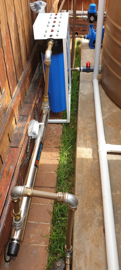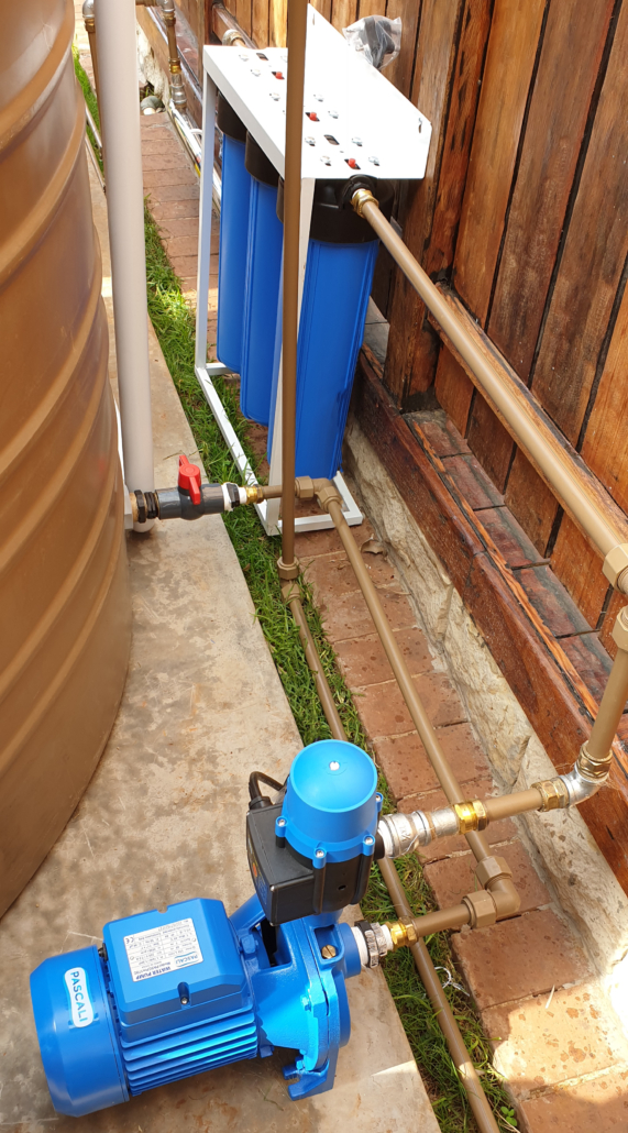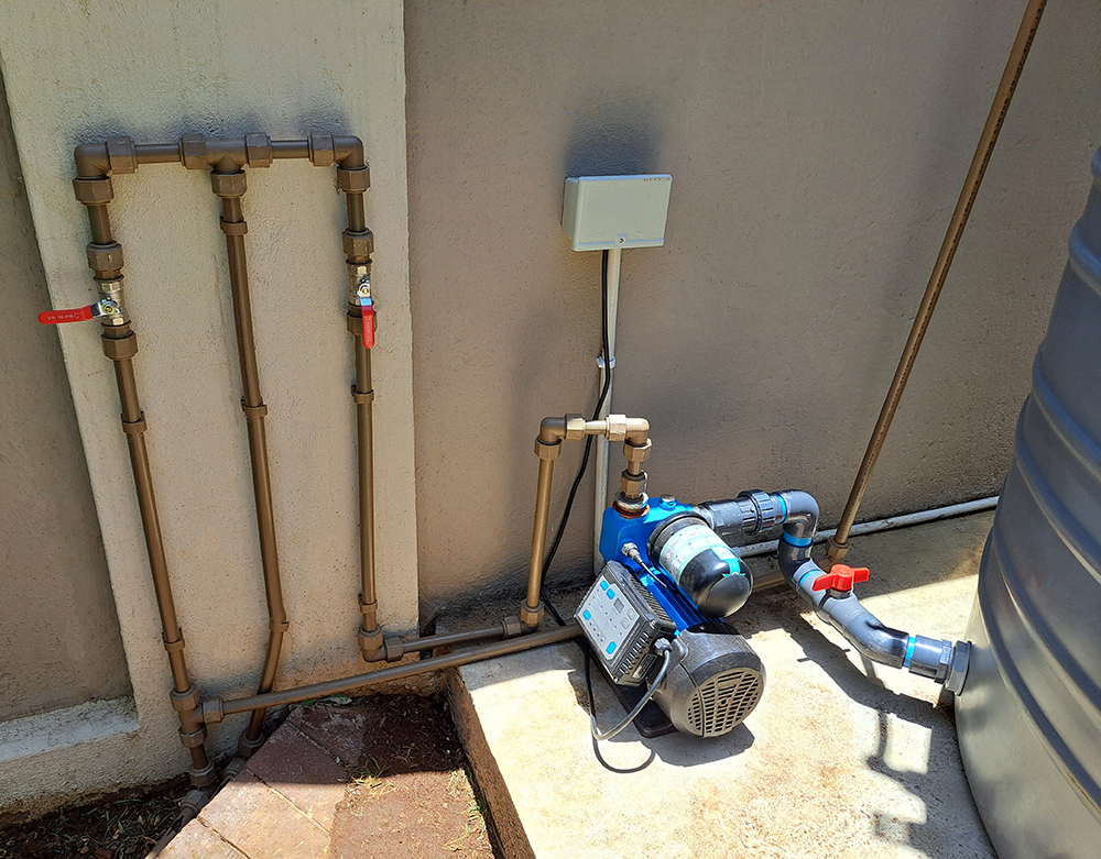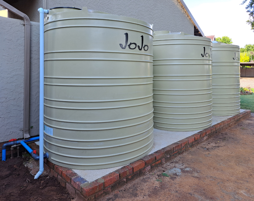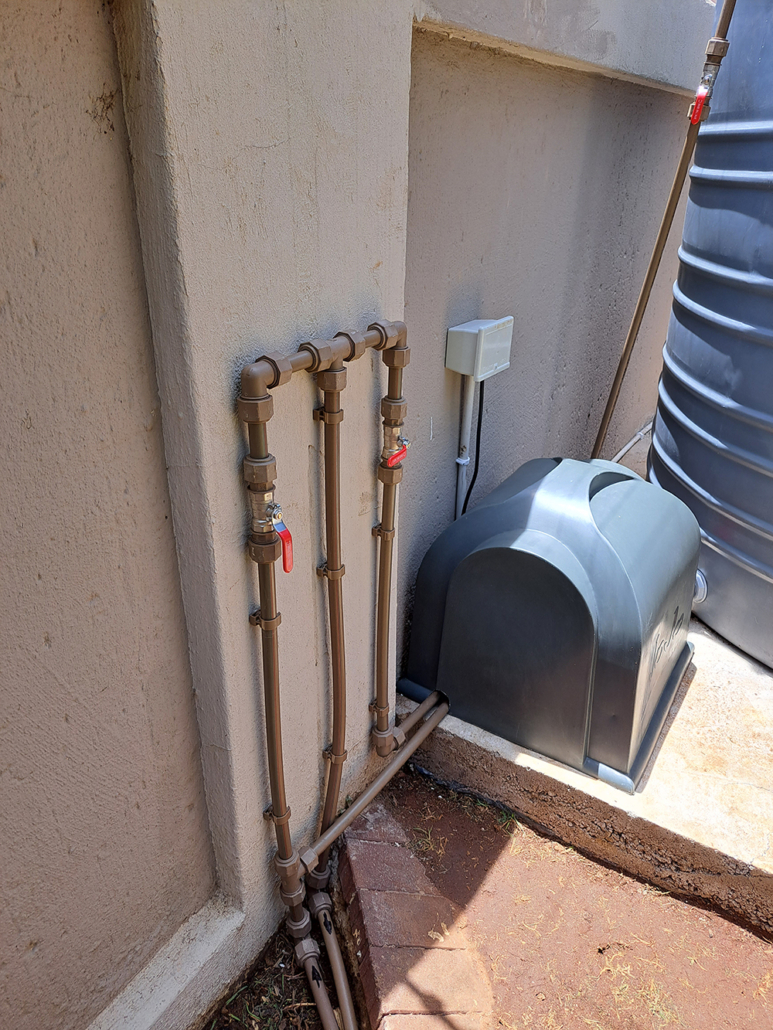 | Private Residence | Cinderella, Boksburg | Rainwater harvesting and water backup: 3x water tanks 1x booster pump 1x water filter | I am happy with the installation and happy that I am now off the grid” |